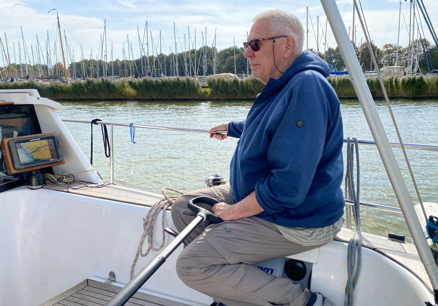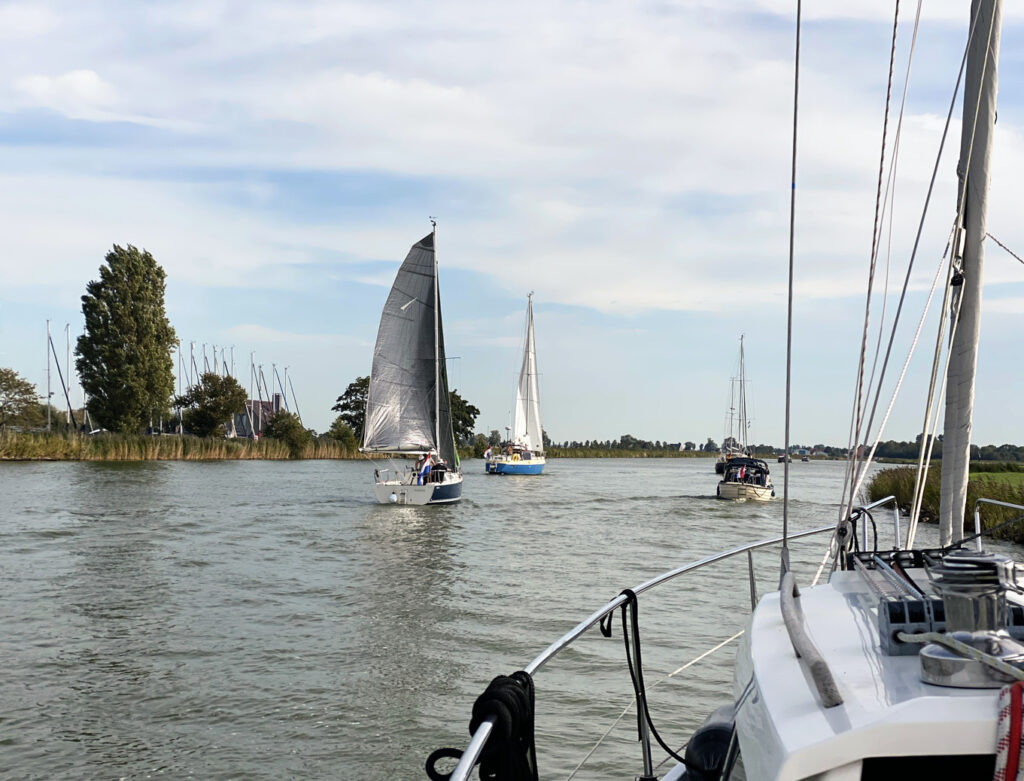 Ich mach’s mal in 2 Teilen, sonst wird’s zu lang. Tatsächlich bin ich – nach der Woche mit den Spleißarbeiten – mal wieder ein paar Tage zusammen mit Sigrid an Bord, und da gibt es unter den wetterbedingten Hafentagen tatsächlich sowas wie einen inneren Feiertag. Nach fast 2 Monaten „an der Kette“ können Rüm Hart und ich endlich mal wieder Auslauf genießen. Wenn auch zunächst nur eine sehr kurze Kanalstrecke von Warns nach Stavoren zum Abpumpen des Fäkalien-Tanks. Ich sag’s mal derb: schöne Scheiße – das erste Mal nach Krankenhaus und OP wieder Diesel- und Wassergeräusche um mich rum – ich genieße es sehr.