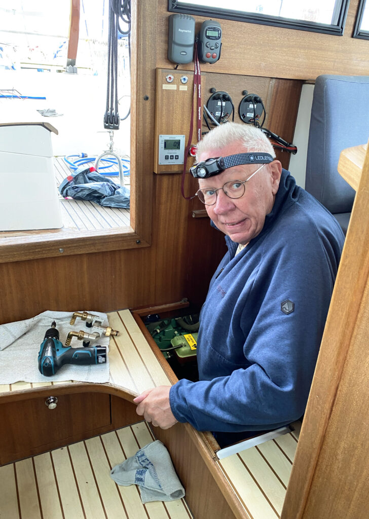 Ansonsten gibt es wie immer Kleinigkeiten am und im Boot zu erledigen. Zum Beispiel eine Motorinspektion, für die ich regelmäßig mit Stirnlampe in die tiefen Rüm Hart’schen Katakomben abtauche. Außerdem habe ich mal wieder eine neue Idee in Arbeit. Stichwort: Restentwässerung der Frischwasseranlage für die Wintervorbereitung. Das komische Ding direkt am Akkuschrauber spielt dabei eine Rolle. Ich werde berichten.