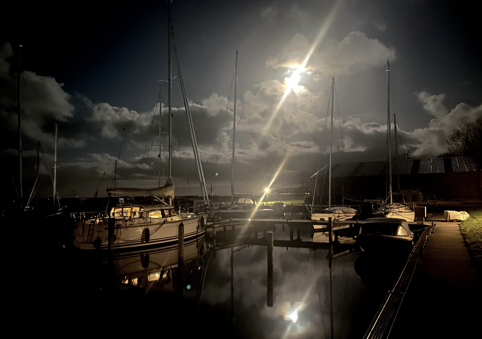 Vollmondnacht – die neuen Laternen im Hafen können ausgeschaltet werden
