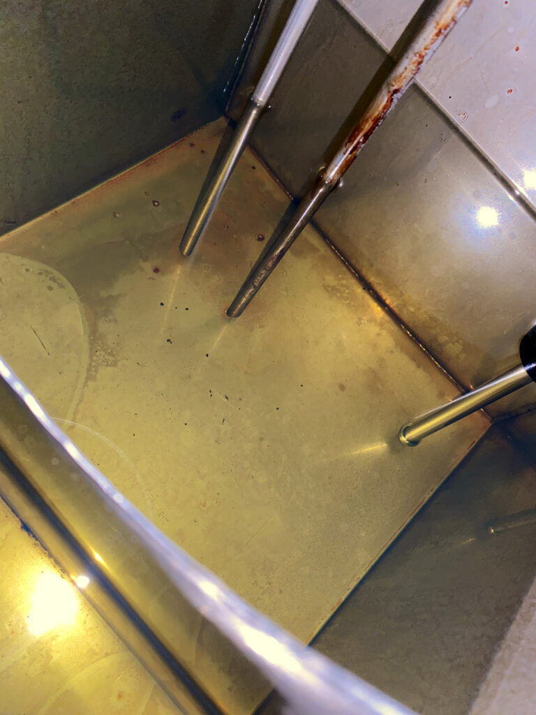kein Bio-Schlamm im halbvollen Dieseltank, die kleinen schwarzen „Teeblätter“ werden noch abgesaugt