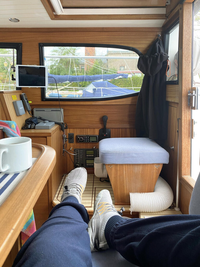Es ist mittlerweile kalt und feucht – Herbst halt. Nachts in der Koje heißt das: Bettdecke plus 2 Fleecedecken plus noch eine kleine über die Füße. Natürlich alles ohne Bordheizung. Die habe ich nachts nie an, da sind wir eisenhart. Besonders freue ich mich, dass mein neuer Ecor Lufttrockner, den ich im Mai eingebaut hatte, so wunderbar funktioniert. Ich schalte ihn meistens so gegen 5 Uhr ein, wenn ich eh mal schnell für kleine Skipper raus muss. Und wenn wir aufstehen, sind die Scheiben frei und trocken. Super! So war das gedacht. Für den kommenden Winterbetrieb wird er über eine Schaltuhr hygrostatisch gesteuert. Heißt konkret: bei einer Luftfeuchte von 65 rel. % und mehr schaltet er ein, bei 55 rel. % und weniger wieder aus.